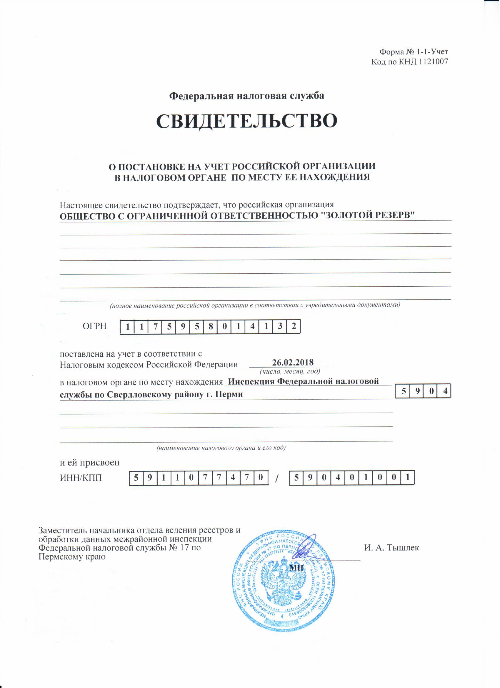 ОГРН "Золотой резерв"